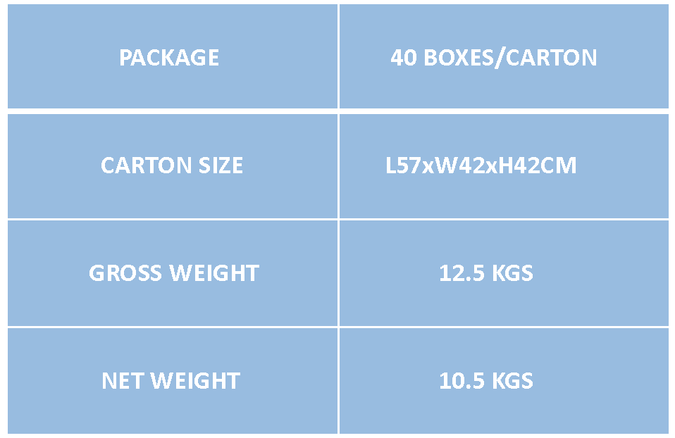 25piece per pack, 2 packs per carton, 2000pcs per carton.